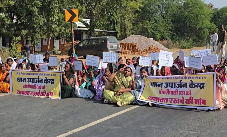 डोगरीपाली छ धान खरीदी केंद्र स्थानांतरण पर किसानों का प्रदर्शन, 40 मिनट तक जाम रहा एनएच-53